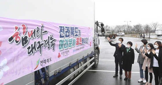 전북도는 26일 코로나19 극복 의지와 위로의 뜻을 담아 대구·경북 지역에 도내 지역특산품 6052상자, 모두 2억원 상당을 전달했다고 밝혔다.