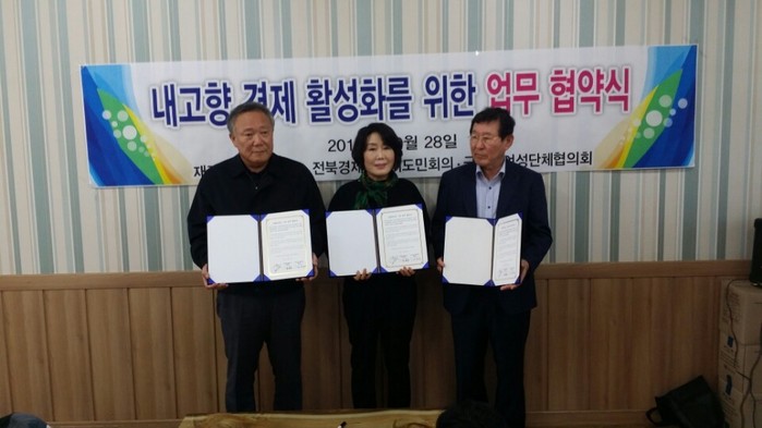 [로컬세계 양해수 기자]28일, 재경군산시 향우회, (사)전북경제살리기도민회의 군산지역본부, 군산시 여성단체협의회는 경제 활성화를 위해 고향방문단 구성 MOU를 체결하고, ‘내고장 상품 애용 운동’에 적극적으로 동참할 것을 약속했다.