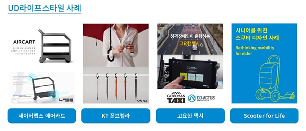 ‘유니버설디자인(UD, Universal Design)’은 유니버설디자인은 성별, 나이, 장애, 언어 등으로 인해 제약을 받지 않도록 모든 사람에게 불편한 요소를 제거하고 편리한 사용성과 시스템을 배려하는 디자인 분야이다.