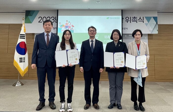▲ ‘국민 안전 급식 점검단’ 위촉식 현장. 한국농수산식품유통공사 김형목 유통이사(가운데), 학교급식안전지킴이 대표(좌측 2번째), 학부모점검단 대표(우측 2번째), 급식관리단 대표(우측 1번째). 한국농수산식품유통공사 제공 |