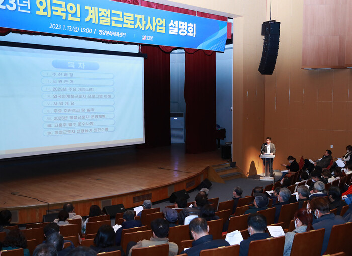 ▲지난 13일 영양 문화체육센터에서 ‘2023년 외국인계절근로자 농가 설명회’ 모습. <사진=영양군 제공> |