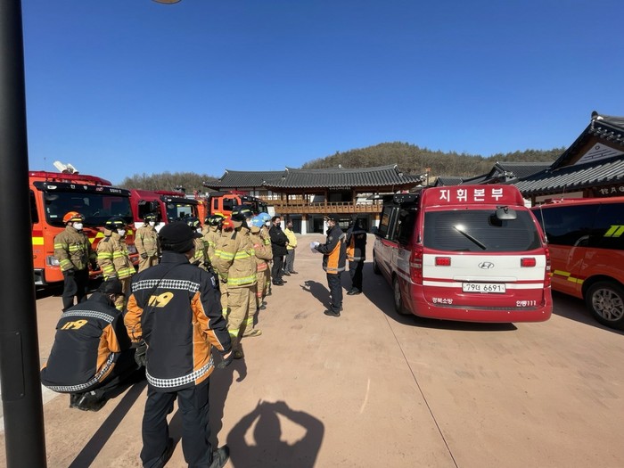 이번 훈련은 교육원 자위소방대원 8명과 관계자 등 12명, 총20명이 참여한 가운데 지휘반, 진압반, 구급구조반, 대피유도반으로 나누어 훈련을 실시하였으며, 자위소방대원 임무숙지 및 목조건축물 초기화재 진압훈련을 통한 신속한 대처능력을 향상하고자 추진됐다.