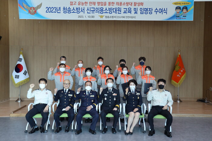 청송소방은 이날 임명장 수여식 전에 신규 의용소방대원을 대상으로 의용소방대의 역사, 역할과 임무 등 기본 소양 교육도 실시했다.