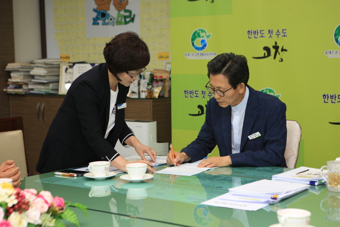 ▲유기상 군수가‘필승 코리아 펀드’에 서명하고 있다.(고창군 제공) |