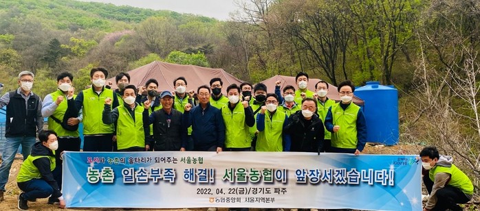 서울농협은 본격적인 영농철을 맞아 22일 서울지역본부(본부장 황준구), 서울영업본부(본부장 임순혁), 서울검사국, 서울생명총국 직원들과 함께 경기도 파주시 소재 농가를 찾아 일손돕기를 실시했다.