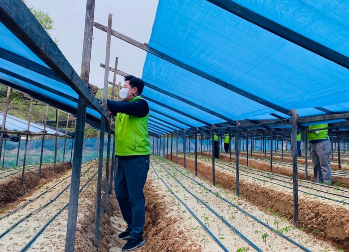 이날 서울농협 직원 20여명은 일손 구하기 힘든 농가를 방문해 인삼밭 차광막 설치와 농장주변 환경정화 등 구슬땀을 흘렸다.