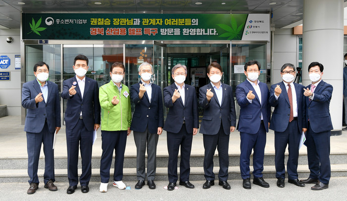 [로컬세계 이창재 기자]경북도와 중소벤처기업부는 10일 경북바이오산업연구원에서 권칠승 중기부 장관이 참석해 ‘경북 산업용 헴프 규제자유특구’실증사업 추진현황을 점검하고, 특구사업자들의 현장 애로사항을 해소하기 위한 간담회를 가졌다.