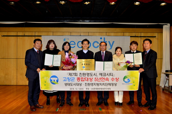 고창군은 12일 서울 공덕동 서울신용보증재단에서 열린 ‘제7회 친환경도시, 에코시티’시상식에서 ‘친환경도시, 에코시티 종합대상’에 5년 연속 선정의 위업을 달성했다고 밝혔다.