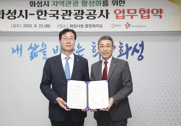 이날 협약식은 최근 지역의 고유한 특색을 활용한 관광이 새로운 관광 트렌드로 부상함에 따라 지역 관광 활성화를 위한 양 기관의 상호 협력을 도모하기 위해 마련된 자리로, 정명근 화성시장과 이재환 한국관광공사 부사장 등이 참석했다.