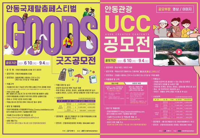 또 ‘안동관광 UCC 공모전’은 안동을 효과적으로 홍보할 수 있는 영상과 이미지를 제작하기 위한 공모전으로, 오는 9월 4일까지 접수한다.
