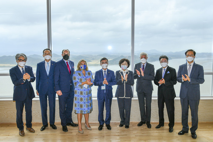 이준규 한국외교협회장은 “남북대결의 상징이었던 이 자리에 역사적인 평화생태공원이 문을 열어 의미가 크다”면서 “이 곳은 앞으로 남북이 과거와 같은 대립의 시대로 돌아가지 않고 화해와 평화의 길로 나아가리라는 확신의 공간이 될 것”이라고 축하했다.