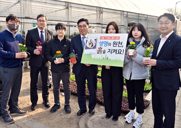 공사는 시민들에게 화분을 나눠주면서 다가오는 제8회 ‘흙의 날’과 흙의 중요성 등을 설명했다. 김춘진 사장은 “흙은 생명의 원천이자 농업의 근간이다”며 “매년 3월 11일 흙의 날을 통해 흙의 소중함을 함께 기억하자”고 말했다.