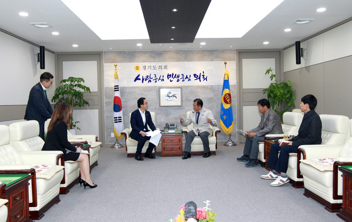 [로컬세계 주덕신 기자]정기열 경기도의장(더불어민주당, 안양4)은 27일 의장 접견실에서 더불어민주당 화성갑 지역위원회 김용 위원장 등 관계자를 만나 화성서부지역 민원을 청취했다.