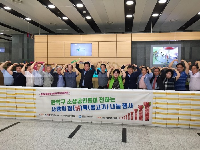 한편 이날 행사는 관악구 소상공인연합회와 동(同)회 이사로 활동 중인 심진축산 박종진 대표가 1000Kg의 양념 불고기를 관악구청을 통해 관악구 노인회에 기증하고, 관악구 자원봉사센터(센터장 임현주)의 자원봉사자들이 지역 전체 경로당에 직접 방문하여 배송해주는 것으로 진행됐다.