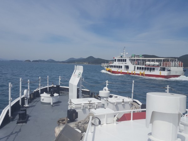 | ▲2017년 제19대 대통령선거 당시 통영해경 경비함정이 투표함을 실은 선박을 안전하게 호송하고 있다.(남해해경청 제공) |