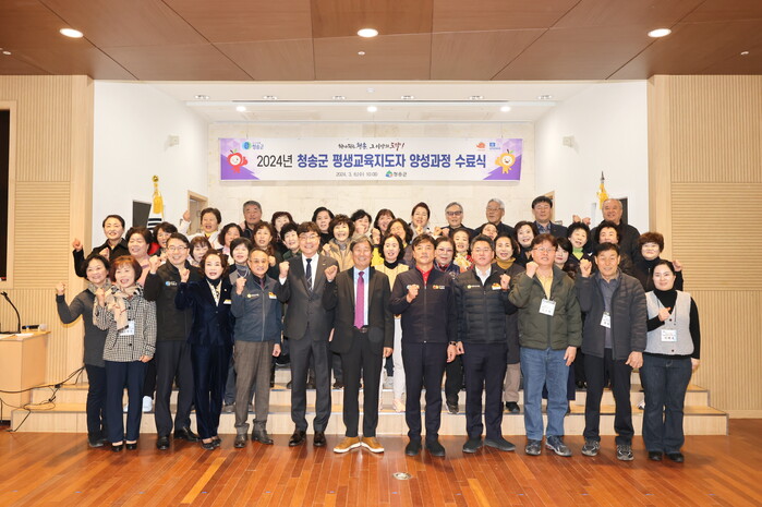 [로컬세계 = 이창재 기자] 경북 청송군(군수 윤경희)은 지난 6일 청송문화예술회관 소공연장에서 마을 단위 평생교육을 주도할 전문인력 육성을 위한 2024년 ‘평생교육지도자 양성과정’ 수료식을 가졌다.