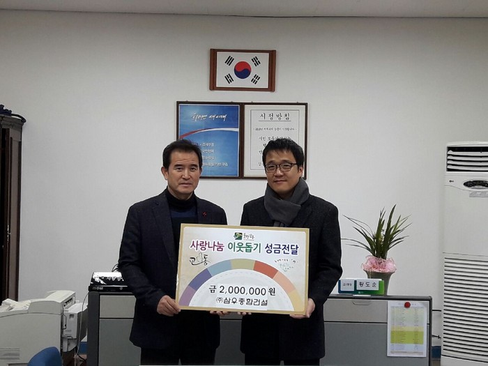 [로컬세계 정연익 기자]삼우종합건설(대표 최동순)은 지난 20일 설 명절을 맞아 교1동주민센터를 방문해 강원사회복지공동모금회 지정기탁을 통해 교1동 관내에 거주하시는 소외계층에게 써달라며 농협 상품권 2백만원을 전달했다.