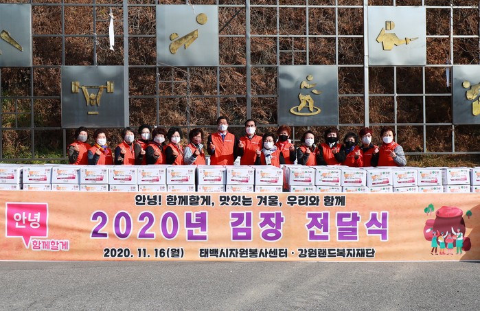 태백시자원봉사센터는 그동안 매년 강원랜드복지재단의 후원으로 관내 자원봉사단체 회원들이 모여 직접 김장김치를 담그는 행복 김장나누기 행사를 진행해 왔다.