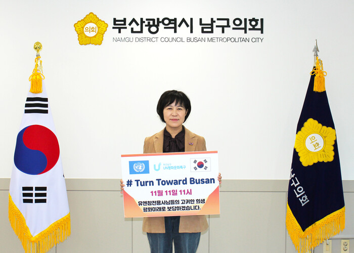 오은택 남구청장으로부터 지목을 받은 박미순 의장은 “11월 11일 오전 11시 1분간의 묵념으로 전 세계가 지역과 시간의 한계를 넘어 모두가 하나가 되길 바란다”라고 말했다.