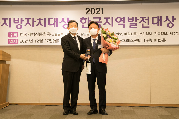 한국지방자치대상은 한국지방신문협회(회장 이상택)가 그해 지역 발전에 가장 큰 공로가 인정되는 광역·기초단체장을 선정해 수여하는 상이다.