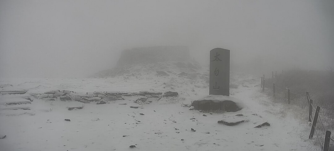 지난 25일 태백산국립공원 천제단 촬영 사진이다. 이날 오후 2시 기준 고지대 적설량은 5.9cm를 기록했다.(사진=태백산국립공원 사무소 제공)