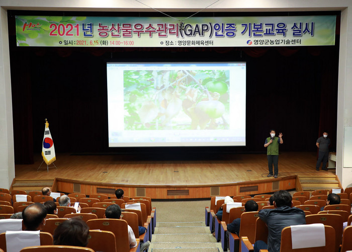[로컬세계 이창재 기자]경북 영양군은 15일 오후 문화체육센터에서 사회적 거리두기를 실천하면서 관내 농가 120여 명을 대상으로 농산물우수관리제도(GAP) 기본교육을 실시했다.