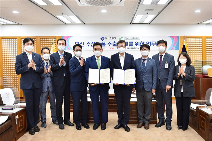 부산시는 5일 오후 5시 30분, 시청 7층 국제의전실에서 한국농수산식품유통공사와 '부산 수산식품 수출 확대를 위한 업무협약'을 체결했다고 밝혔다.