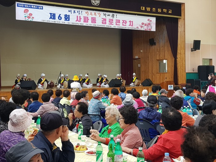[로컬세계 한용대 기자]경남 창원시 성산구 사파동행정복지센터는 제47회 어버이날을 맞아 6일 오전 대방초등학교 체육관에서 700여 명의 관내 어르신들을 모시고 흥겨운 ‘경로큰잔치’를 열었다.