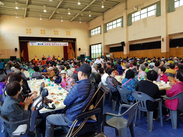 | ▲사파동 어르신 700여 명이 제6회 사파동 경로큰잔치 효도공연을 관람하며 즐거운 시간을 보내고 있다.(창원시 제공) |