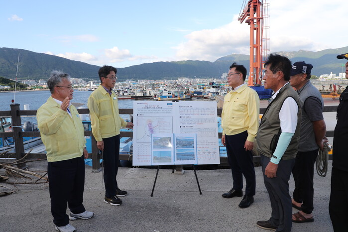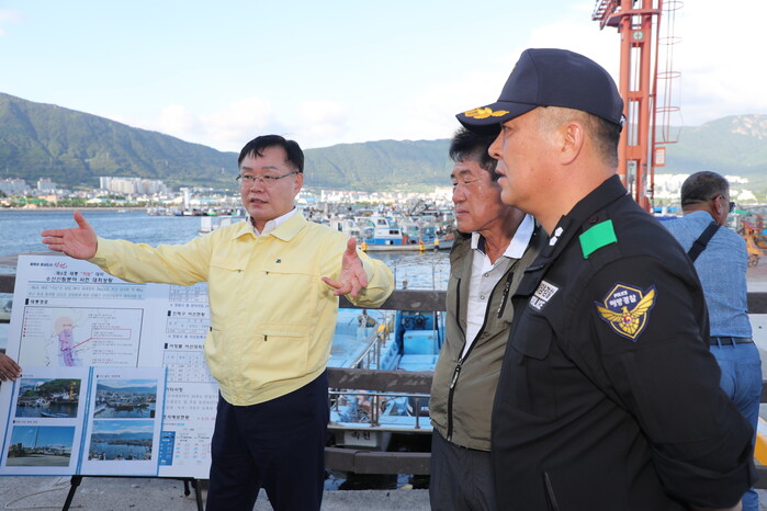 특히 속천항은 해일 피해를 예방할 수 있는 지형 특성이 있어 많은 선박의 피항지로 이용되고 있고, 현재 어선 약 211척 정도가 접안하고 있어 태풍 북상에 대비한 속천항의 시설 점검 및 선박 결박상태 점검 등 각별한 주의가 필요하다.