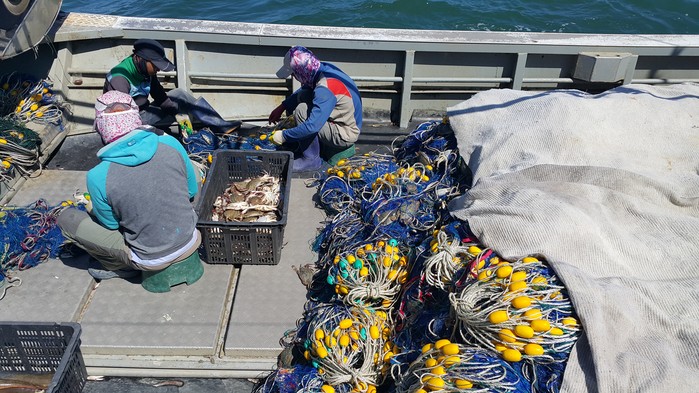 부안해경에 따르면 27일 오전 11시경 위도 대리 남방 6.5해리(남쪽 12km) 해상에서 전남 영광선적 A호(6.67톤, 연안자망, 승선원 3명, 선장 이모씨, 53세)가 조업구역을 위반(도계위반)해 자망어구를 투망해 꽃게 약 50Kg을 포획한 것을 적발했다.
