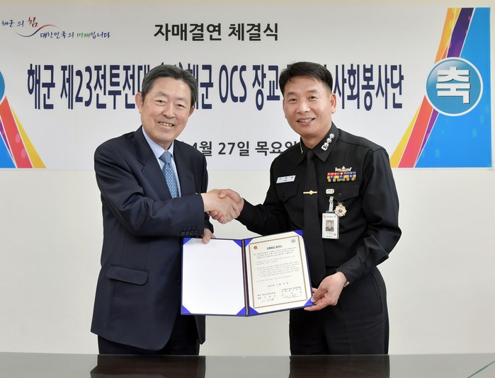 [로컬세계 주덕신 기자]해군 2함대사령부 23전투전대는 27일 오후, 함대 내 5특전대대 소회의실에서 사단법인 해군 OCS장교 중앙회 의료봉사단과 자매결연을 체결했다.