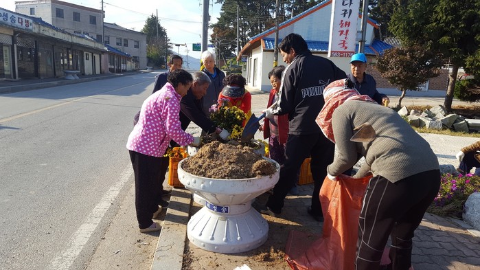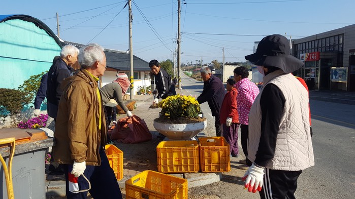 [로컬세계 김경락 기자]전북 고창 성송면이 7일 주민들과 함께 ‘국화향 그윽한 명품 성송 거리조성’을 위해 화단 꽃심기에 나섰다.