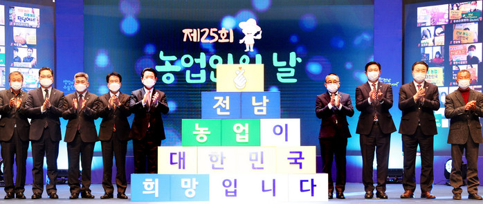 행사는 올 한해 고생한 농업인들을 위로하고 어려움을 극복하고 이겨내자는 메시지를 담은 국악 공연과 함께 전남 농업 발전에 기여한 농업인과 시군에 대한 시상도 이어졌다.