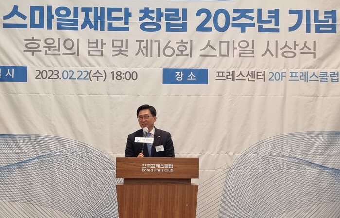 이어, 김 사장은 서울시 중구 프레스센터에서 스마일재단이 개최한 ‘창립 20주년 기념 후원의 밤 및 제16회 스마일시상식’에 참석해 축사를 했다.