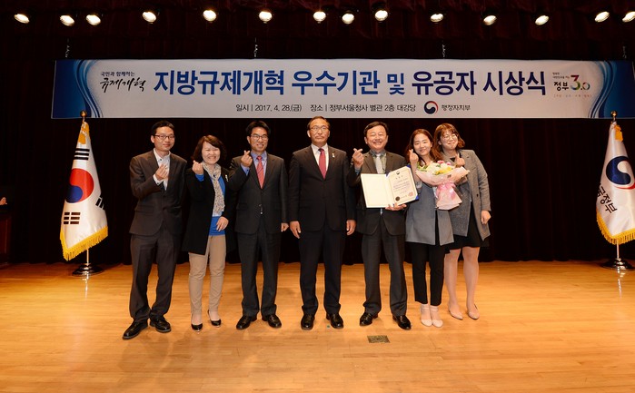 지방규제개혁 추진실적 평가는 행정자치부가 전국 243개 지자체(광역 17, 기초 226)를 대상으로 2015년 11월 1일부터 2016년 12월 31일까지의 규제개혁 실적을 심사해 우수 지자체를 선정 시상한다. 우수 지자체로 선정된 기관에는 특별교부세 5000만원이 주어진다.