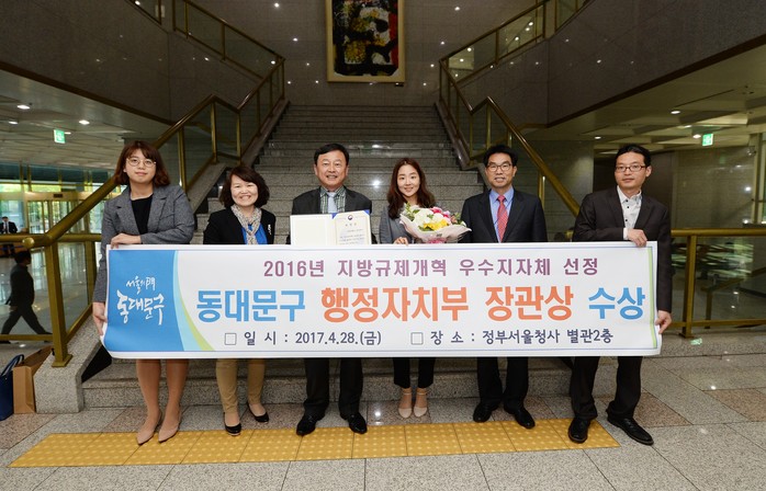 [로컬세계 이명호 기자]서울 동대문구는 28일 오후 3시 정부서울청사 별관에서 열린 ‘2016년 지방규제개혁 추진실적 평가 시상식’에서 행정자치부 장관상을 수상했다고 밝혔다.