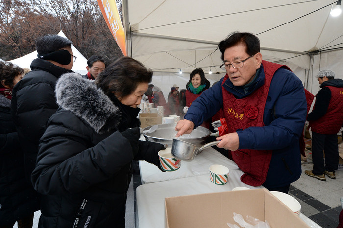 구는 새벽 6시부터 배봉산 야외공연장에서 ‘새해 복(福) 떡국’ 나눔행사를 진행했다. 눈발이 흩날리는 가운데 배봉산을 찾은 주민들이 추위를 녹일 수 있도록 전농2동 마을행사추진위원회에서 정성을 들여 준비한 7000인분의 떡국이 제공됐다.