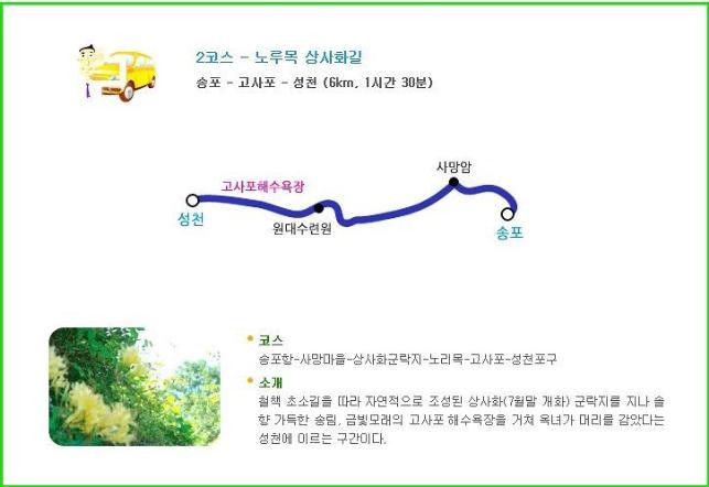 변산마실길 제2코스인 노루목 상사화길은 부안군 변산면 송포항에서 출발해 고사포를 거쳐 성천항에 이르는 약 6㎞ 코스다.