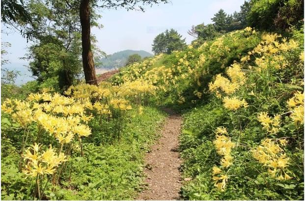 철책 초소길을 따라 자연적으로 조성된 진노랑 빛의 붉노랑상사화 군락지를 만날 수 있어 매년 가을로 접어드는 시기 탐방객에게 큰 사랑을 받고 있다.