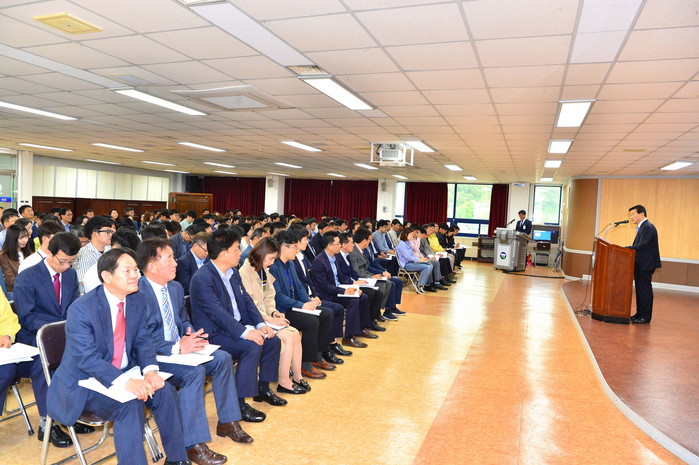 ▲박우정 군수가 1일 군청 대회의실에서 ‘비전다짐의 날’ 행사에서 "지난 3년 10개월의 소회와 함께 직원들과 비전을 다짐하고 있다.(고창군 제공) |