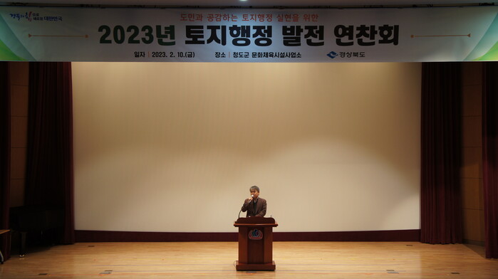 [로컬세계 = 이창재 기자] 경북도는 10일 청도군 문화체육시설사업소에서 도와 시군 업무담당자 120여 명이 참석한 가운데 ‘2023년 토지행정 발전 연찬회’를 개최했다.
