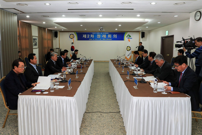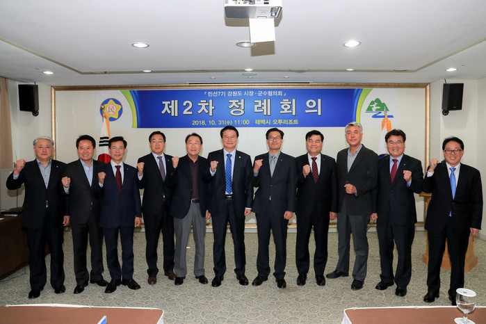 [로컬세계 박상진 기자]민선7기 강원도 시장·군수 협의회 제2회 정례회가 31일 강원 태백시 오투리조트에서 류태호 태백시장 등이 참석한 가운데 열렸다.(사진=태백시 제공)
