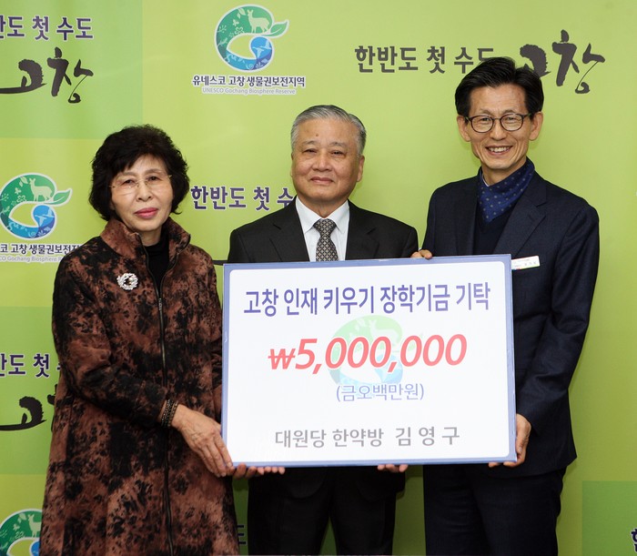 고창읍에서 한약방을 운영하는 김영구(대원당 한약방)씨가 지난 7일 고창군장학재단에 장학금 500만원을 기탁했다.
