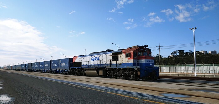 ▲포항영일만항을 출발하는 화물기차. <사진=경북도 제공> |