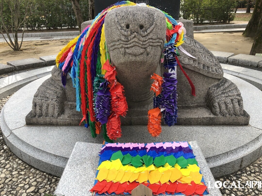 毎年8月5日には、韓国人犠牲者慰霊祭が行われる。慰霊碑を支える亀の首には、常に折り鶴が掛けられている。折り鶴は全国の韓国学校、朝鮮学校、国際学校などの生徒たちが犠牲者を思いながら精誠を込めて折って持ち寄り掛けているので、今や平和の象徴として根付いている。
