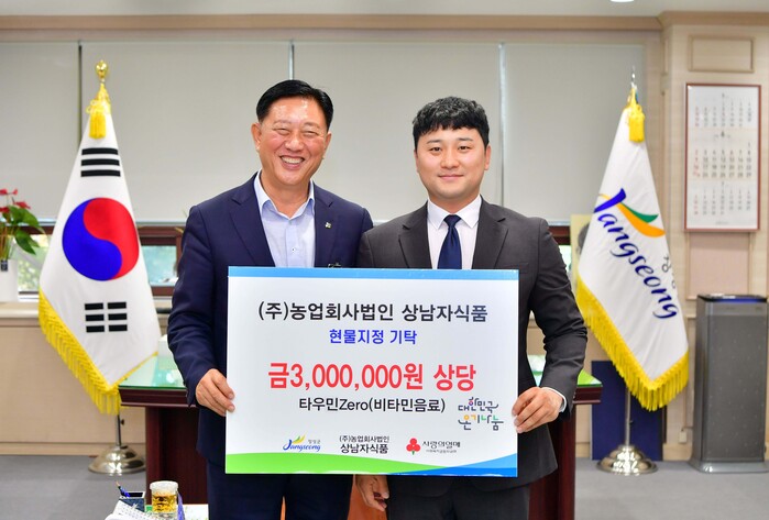 26일 장성군에 따르면 농업회사법인 상남자식품이 상록원을 비롯한 지역 내 12개 아동 시설에 300만 원 상당의 자사 비타민 음료를 현물지정 기탁했다.
