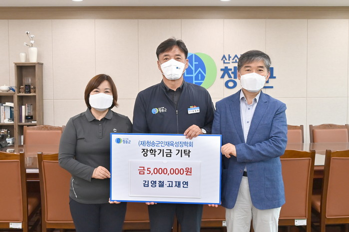 [로컬세계 이창재 기자]경북 청송군은 진보면에 거주하는 김영철・고재연 부부가 지난 2일 (재)청송군인재육성장학회(이사장 윤경희)에 장학금 500만원을 기탁했다고 3일 밝혔다.