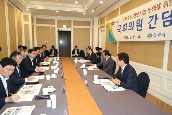 이날 간담회에는 이주영 국회부의장, 김성찬 국회의원, 박완수 국회의원이 참석했으며, 허성무 시장을 비롯한 간부공무원 5명이 함께했다.