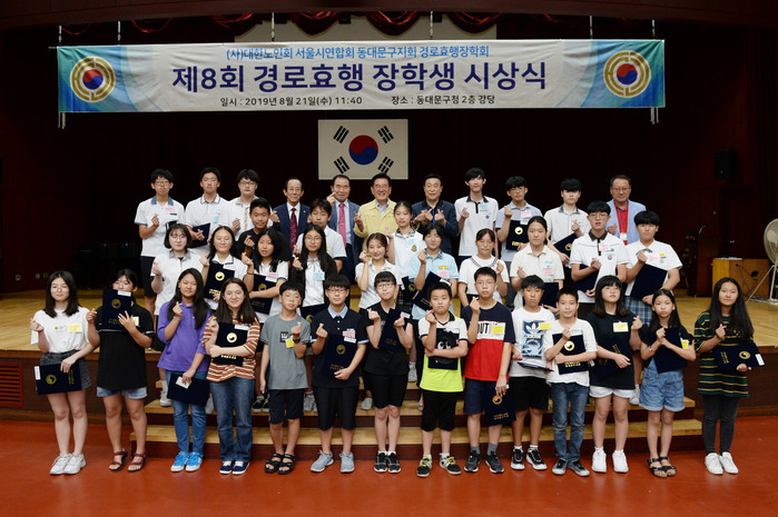 경로효행 장학생 시상식은 (사)대한노인회 동대문구지회가 135개 동대문구 내 모든 경로당에서 어르신들이 십시일반 모은 모금액 1310만원을 지역 내 초‧중‧고등학생 37명에게 장학금으로 전달하는 자리로 마련됐다.